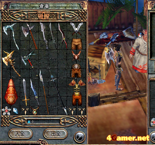 | お金を貯めて,やっと倉庫が使えるように。アカウントごとに一つ利用できるので,キャラクター間のアイテム移動もスムース |