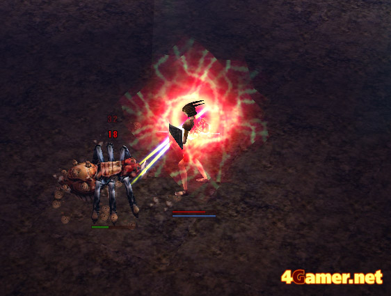 | ちょっと槍を使ってみた。長いリーチでタランチュラに攻撃できるが,いつもより盾の防御力がない分,受けるダメージも増えたので2秒でやめ |