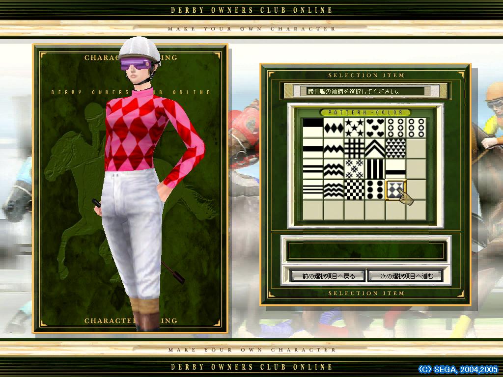 競馬モチーフのゲームとしては異例かもしれないが,このゲームで最初に行うことは,プレイヤー自身のキャラクターメイキングだ。顔や髪型,服の色やデザインを選び,名前を入力する。ここで決めた外見はレースや調教の成果に影響するわけではないが,序盤のかなり長い間,ここで決めた服装でプレイすることになるので慎重に選びたい。プレイが進んでお金に余裕ができてきたら,新しい服を購入してさまざまなファッションを楽しむことも可能になる。