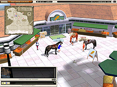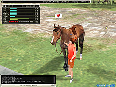 調教や放牧,レースといった,いかにも競馬らしい要素のみならず,愛馬と独特のRPG的日常を過ごせるのがこのゲームの特徴だ。このゲームでは街や家,調教場や競馬場といった施設も3Dで描かれた空間に配置されており,プレイヤーキャラクターは自分の馬を連れて歩いたり,乗って走ったりしてマップ上を動き回る。全体の作りはまさにRPGなのだ。