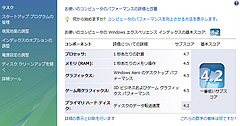 まず,Microsoft® Windows Vista™標準のパフォーマンス評価機能,「エクスペリエンス インデックス」の結果をグラフ1に示した。テスト項目は「プロセッサ」(=CPU),「メモリ(RAM)」(=メインメモリ),「グラフィックス」(=Aeroにおける性能),「ゲーム用グラフィックス」,「プライマリハードディスク」の5項目。各項目とも,3.0以上で合格,4.0以上だとかなり快適に動作させられるレベルにあることを示している。