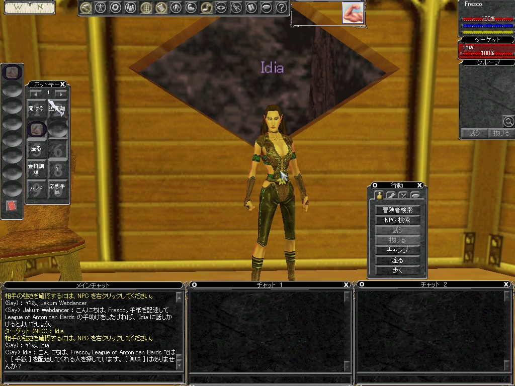 まず,ケレティンにあるBrdギルドホールへ行ってみよう。Idiaさんを探して話しかける。EQでは「Hail」(NPCをターゲットしてHキー)で話しかけると会話ができる。キーワードを繰り返すことでクエストが進行するので,フリーポート行きのクエストを受けよう。