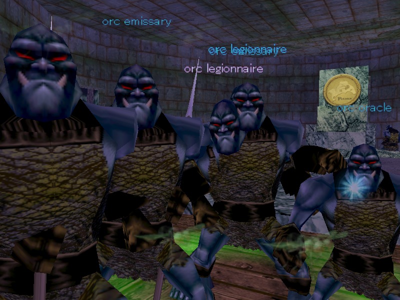 といった感じだ。Throne Roomには,Emperor以外に,Ambassador Dvinnという Namedが出現する。Dvinnはレベルは低いのだが,このダンジョンで最強の Mobである。Crushbone Orcと親交のあるDark Elfの街Neriakからきた外交使節だ。 CCBでOrcを殺すとNeriakの ファクションが下がるのはそういう次第でもある。