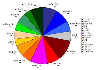 | レベル65キャラクターでのクラスごとの種族構成比 |