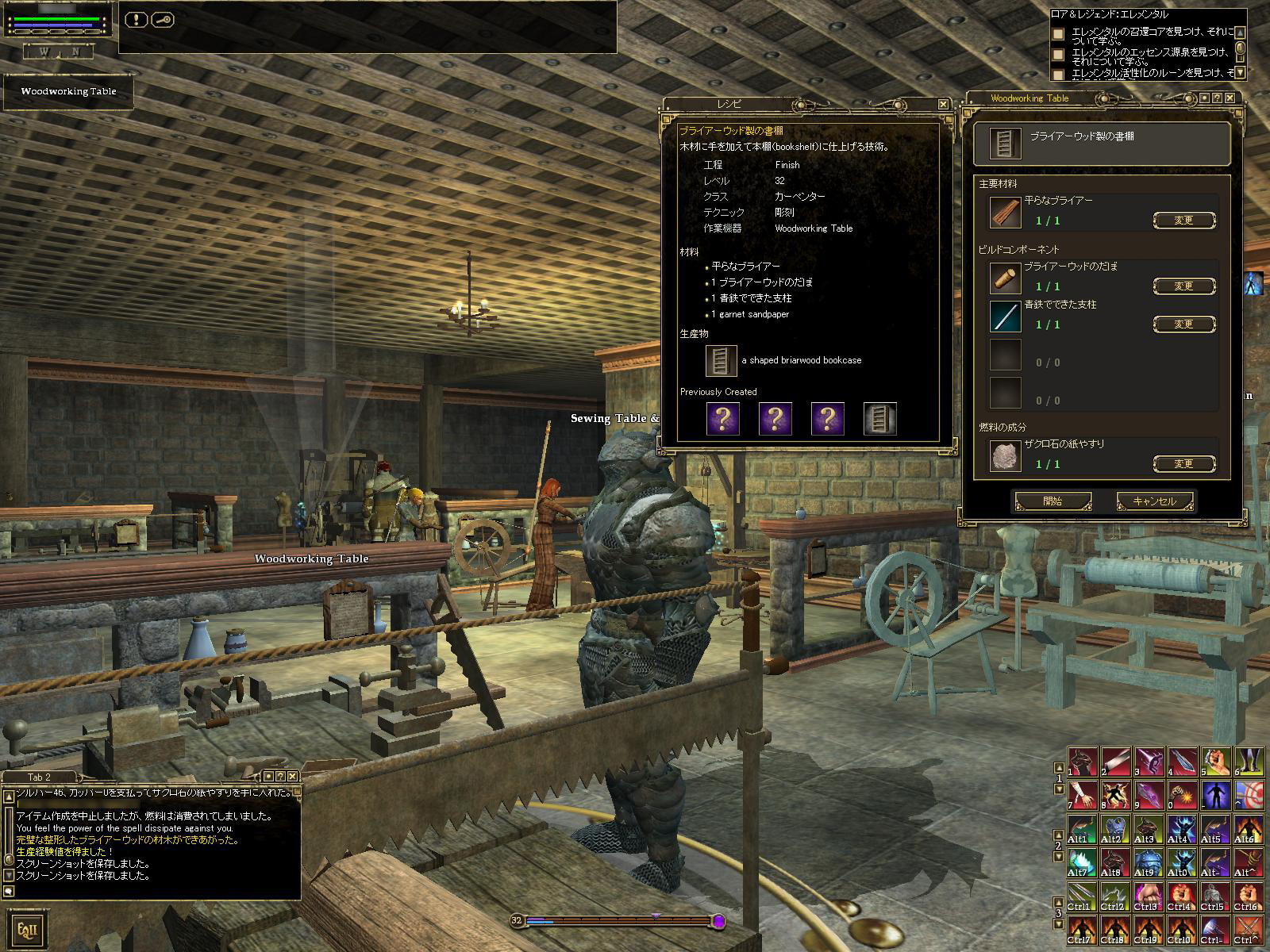 EQIIの生産は,工房への所属,レシピの取得,素材の採取,素材の精錬,中間製品の作成,完成品の作成と,やや複雑な手順で行われる。