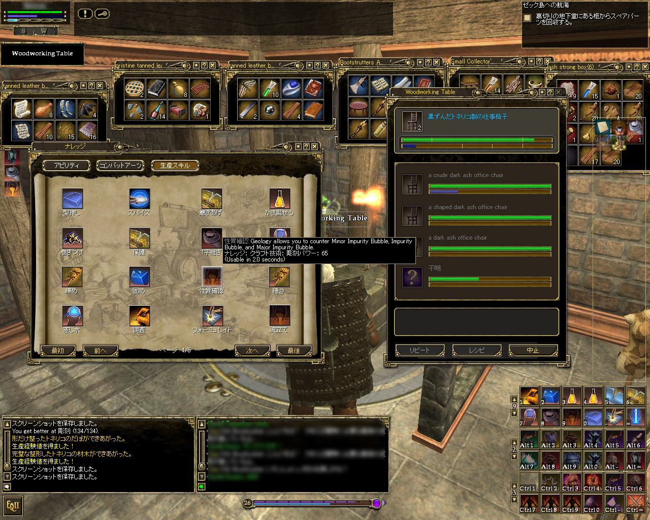 またこのスキルは該当するアイテムを作成するか,生産スキルを使用することで上がっていく。