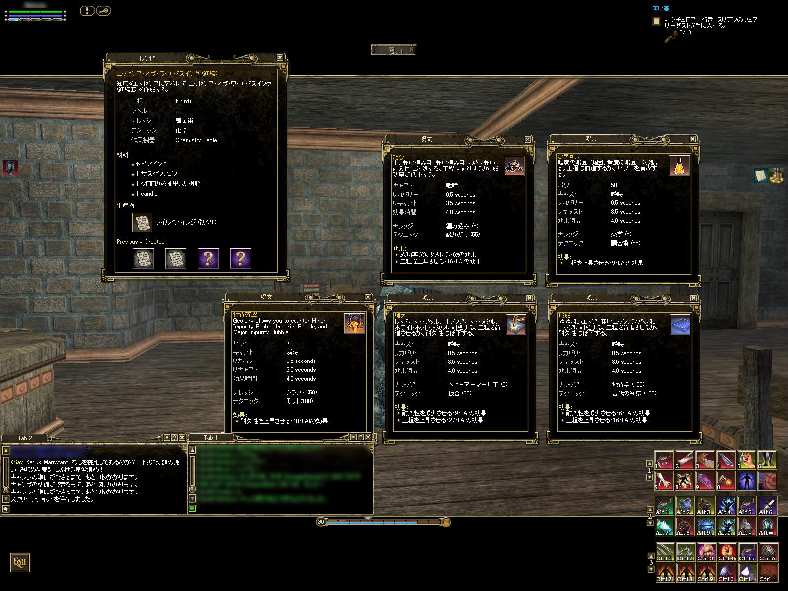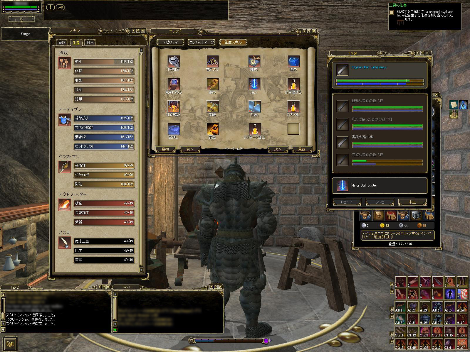 の2種類の効果を持つものが存在する。これらはアーティザンレベル10ごとに交互に3スキルを1セットごとに覚えていき,実際の生産時には,同じナレッジ/テクニックでも前述の異なるタイプを合わせ,合計六つの生産スキルを駆使して,素材の耐久度を損なうことなく,作業工程を進めていくこととなる。