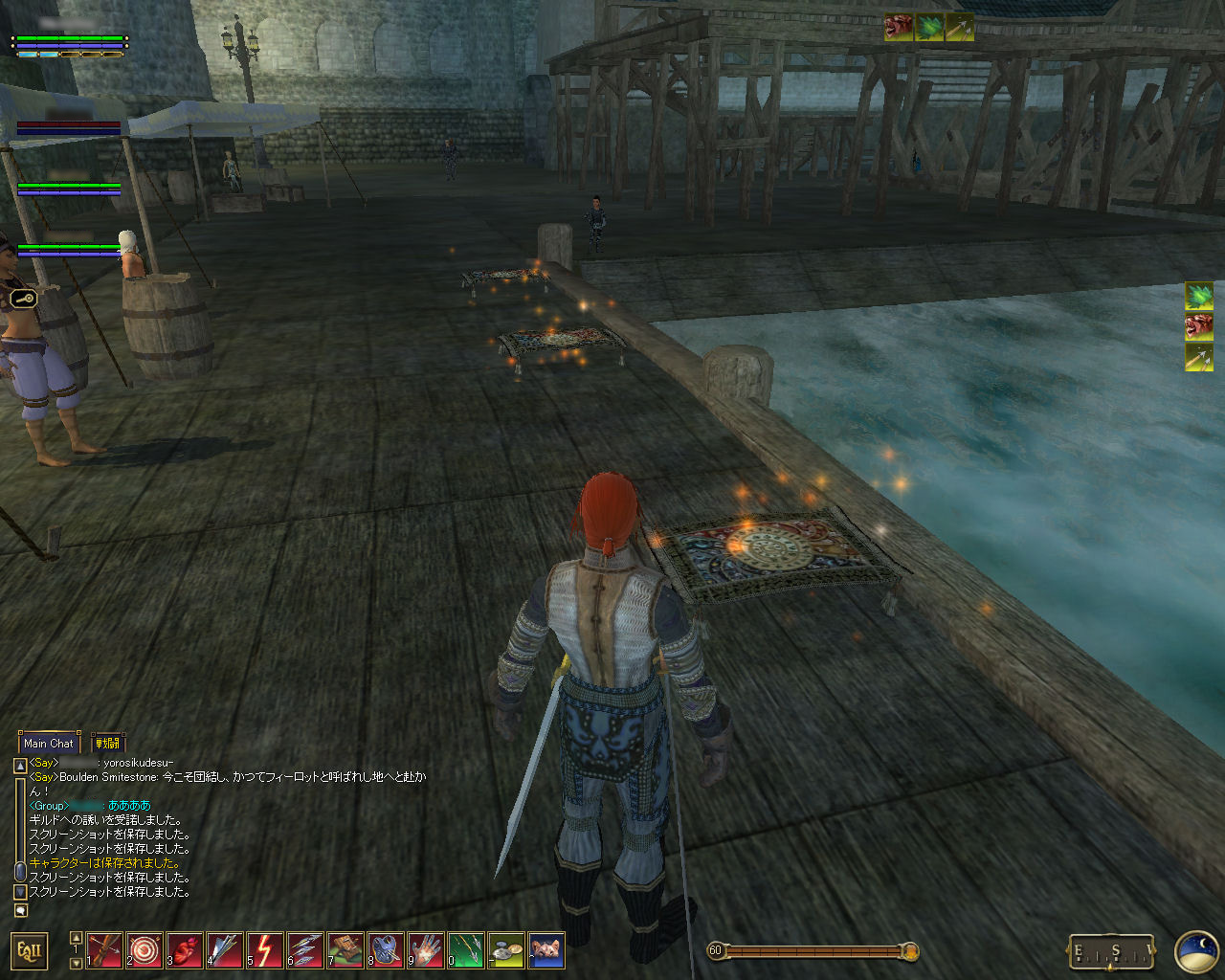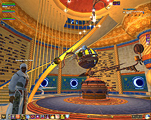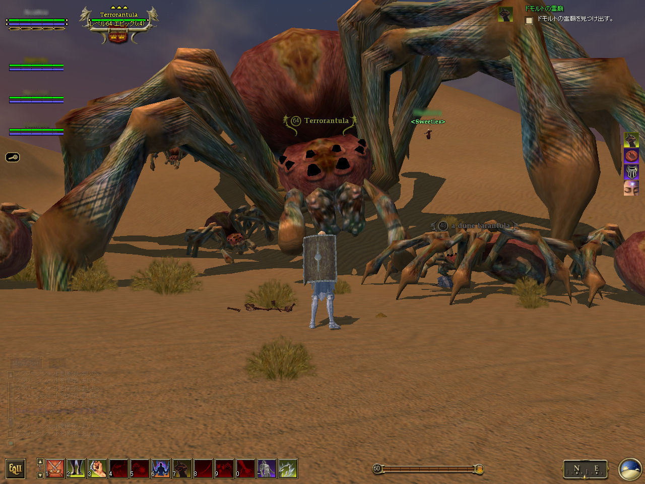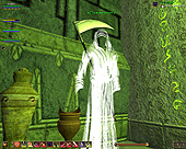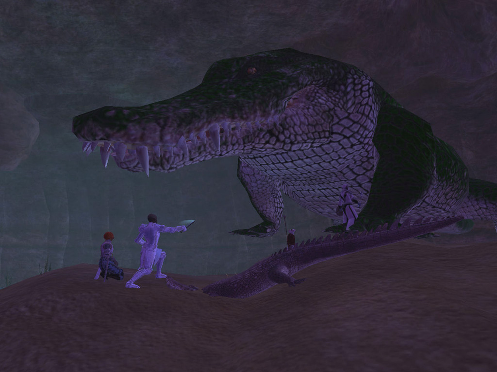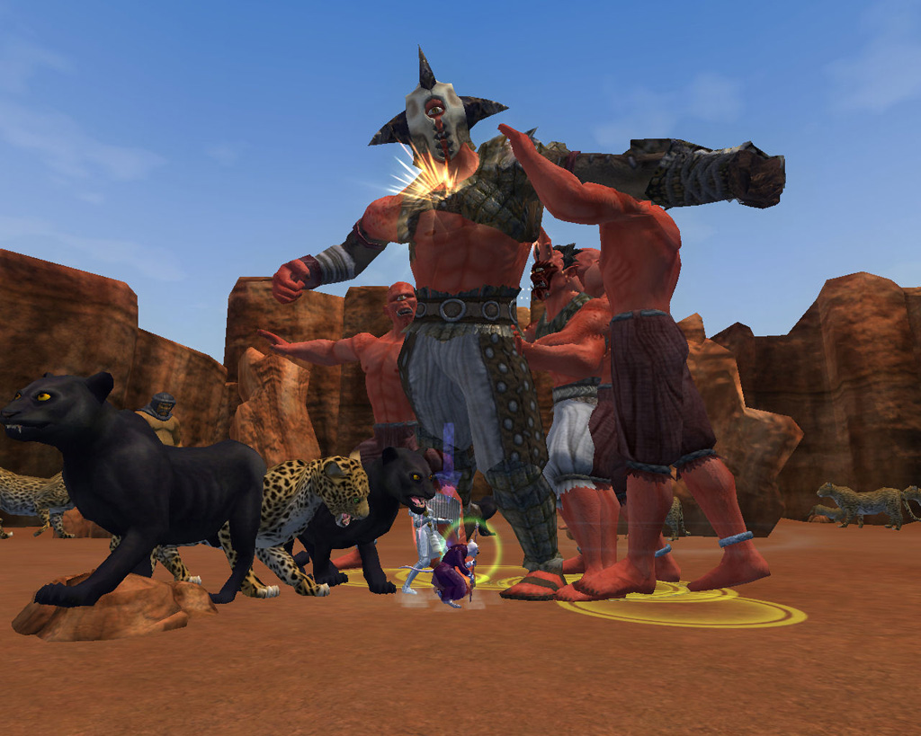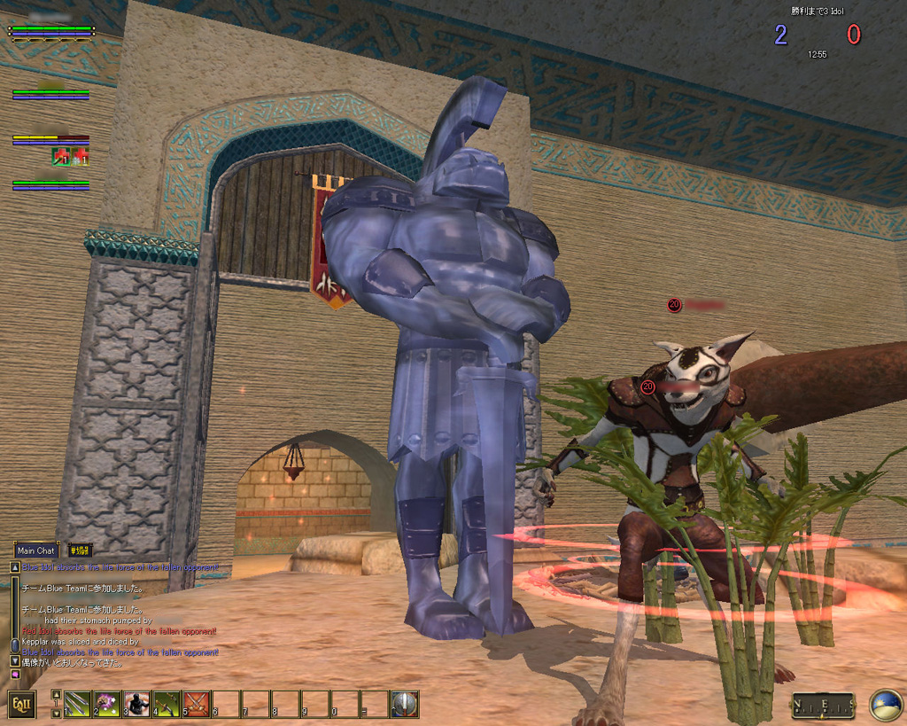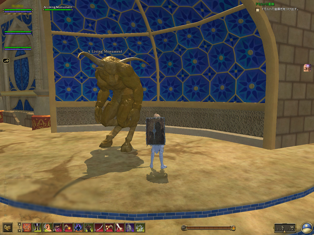 このテントには,さまざまな勢力のNPCが並んでいた。この世界へ新たに訪れる冒険者の勧誘合戦はもう始まっている,といった風情だ。ガイドの先導で進んでいくと,画面上にいま入った地域名が表示される。「マーのオアシス」! 前作「エバークエスト」(以下,EQ1)の経験者であればアレやコレやいろんなものを思い出さずにはいられない地名だ。この古い友人に久しぶりに出会えたような感覚が嬉しい。