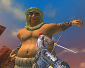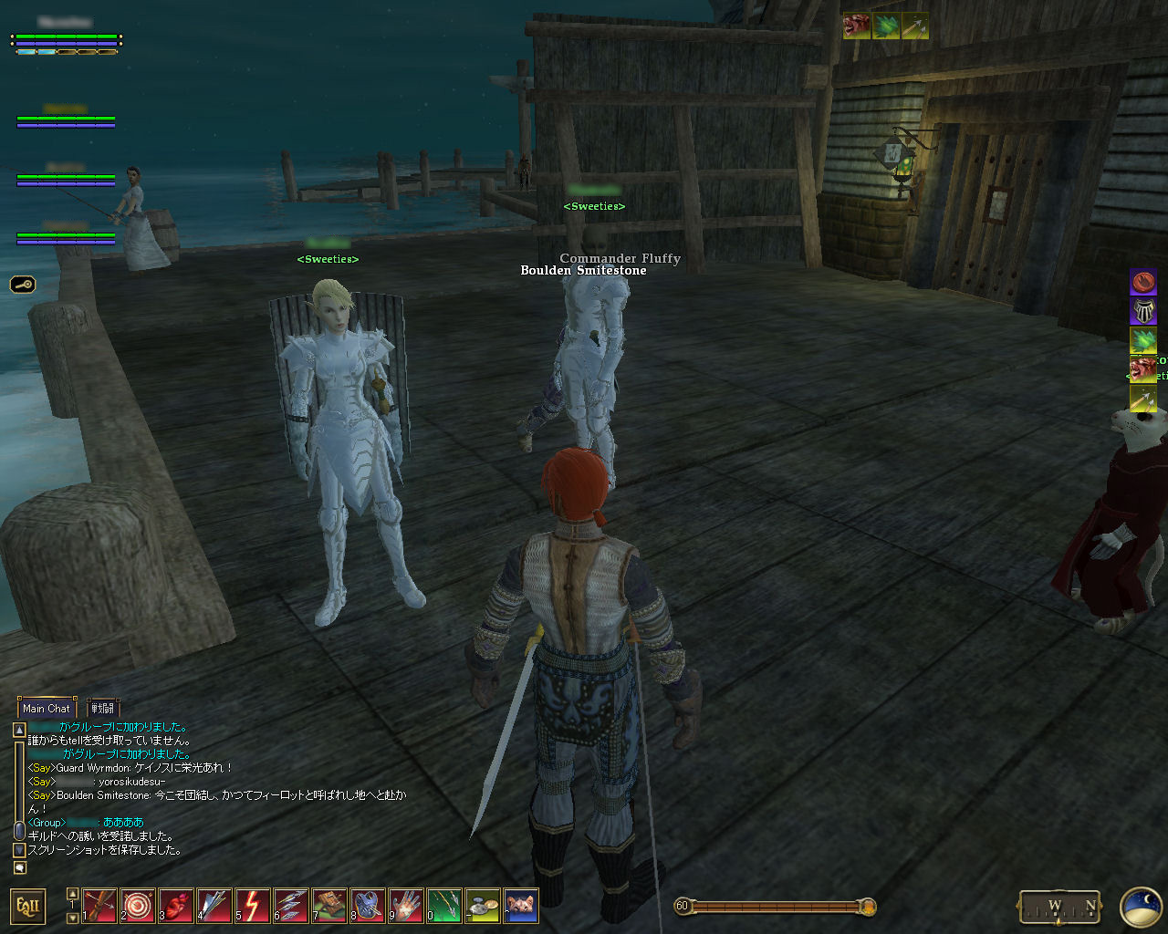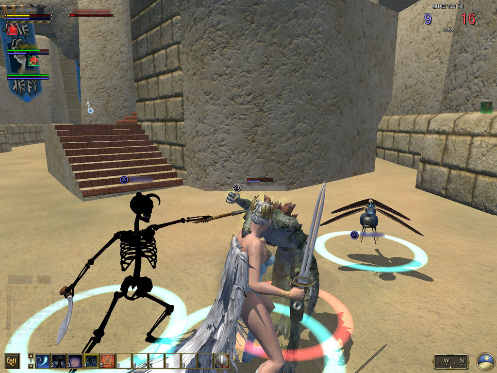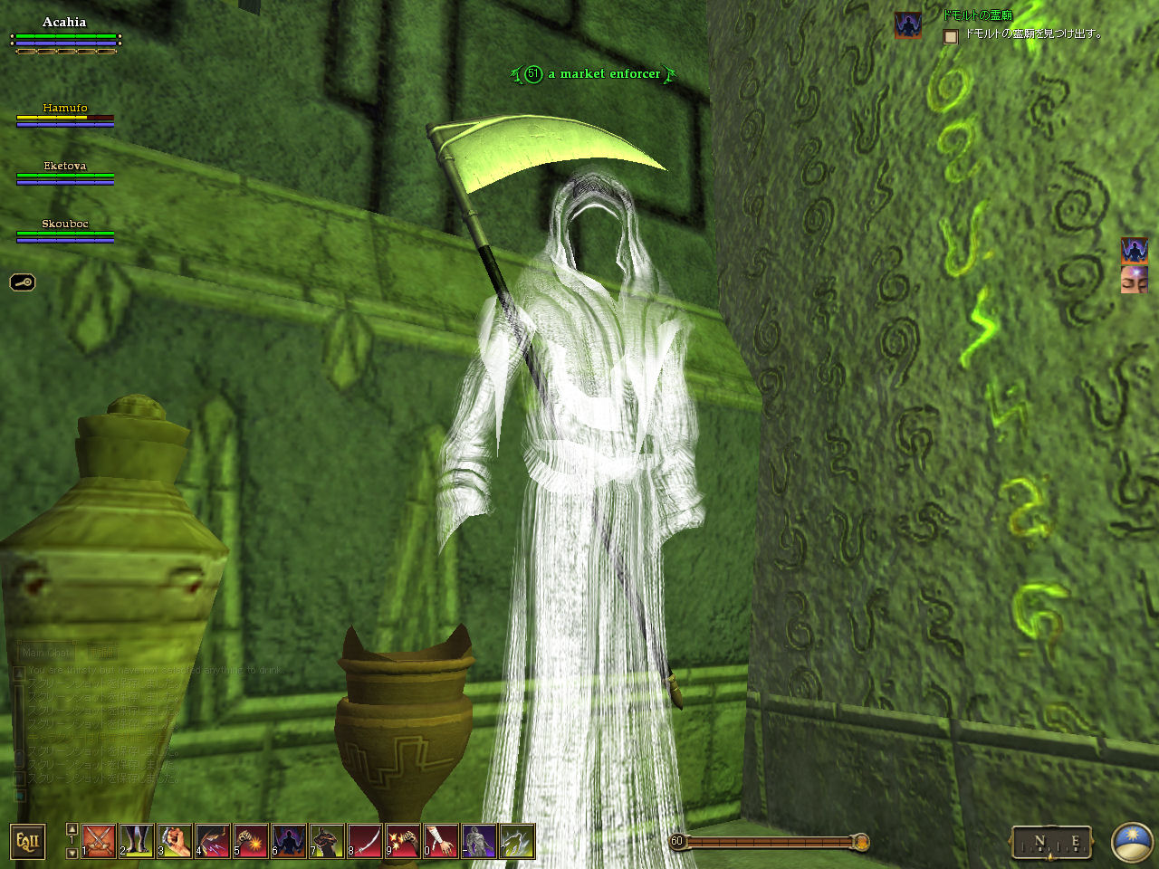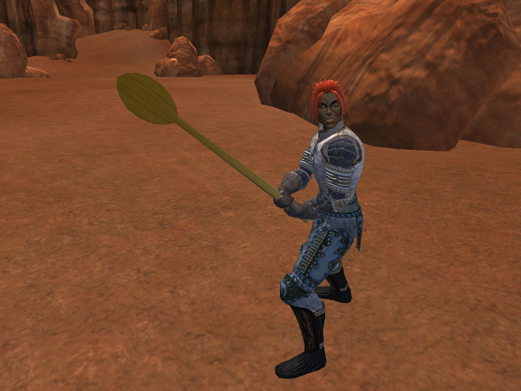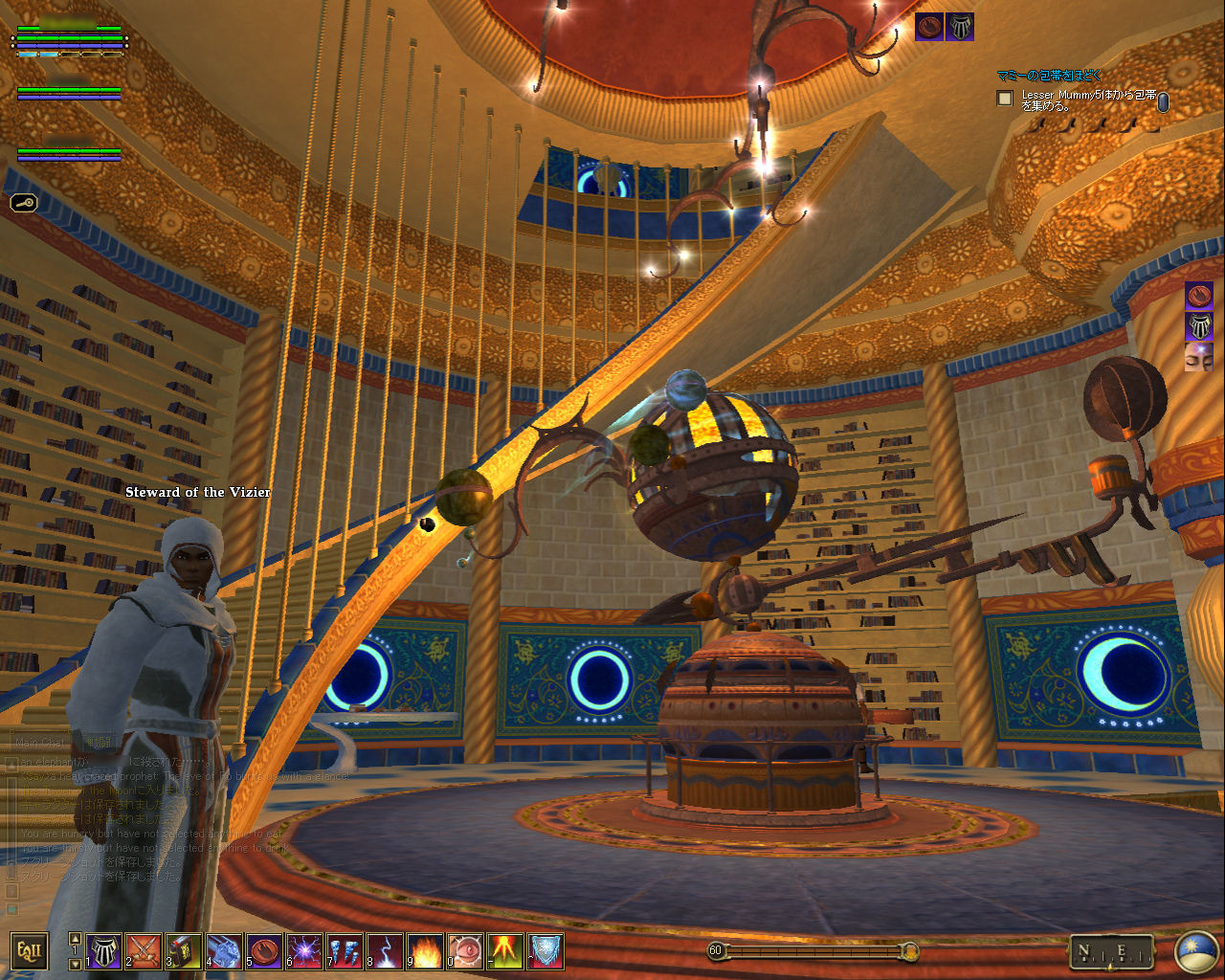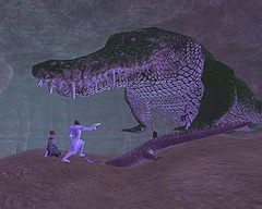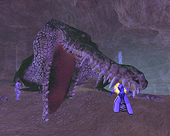 このテントには,さまざまな勢力のNPCが並んでいた。この世界へ新たに訪れる冒険者の勧誘合戦はもう始まっている,といった風情だ。ガイドの先導で進んでいくと,画面上にいま入った地域名が表示される。「マーのオアシス」! 前作「エバークエスト」(以下,EQ1)の経験者であればアレやコレやいろんなものを思い出さずにはいられない地名だ。この古い友人に久しぶりに出会えたような感覚が嬉しい。