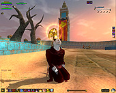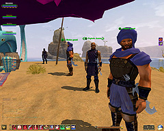 魔法の絨毯に乗ってたどり着いたのは,DoFのモチーフとなっているアラビアンナイト風の砂の世界。着陸地点付近のテントには,頭にターバンを巻いたNPC達がいる。このターバンの色やズボンの色などで,彼らの属するファクション(所属勢力)が分かるという。
