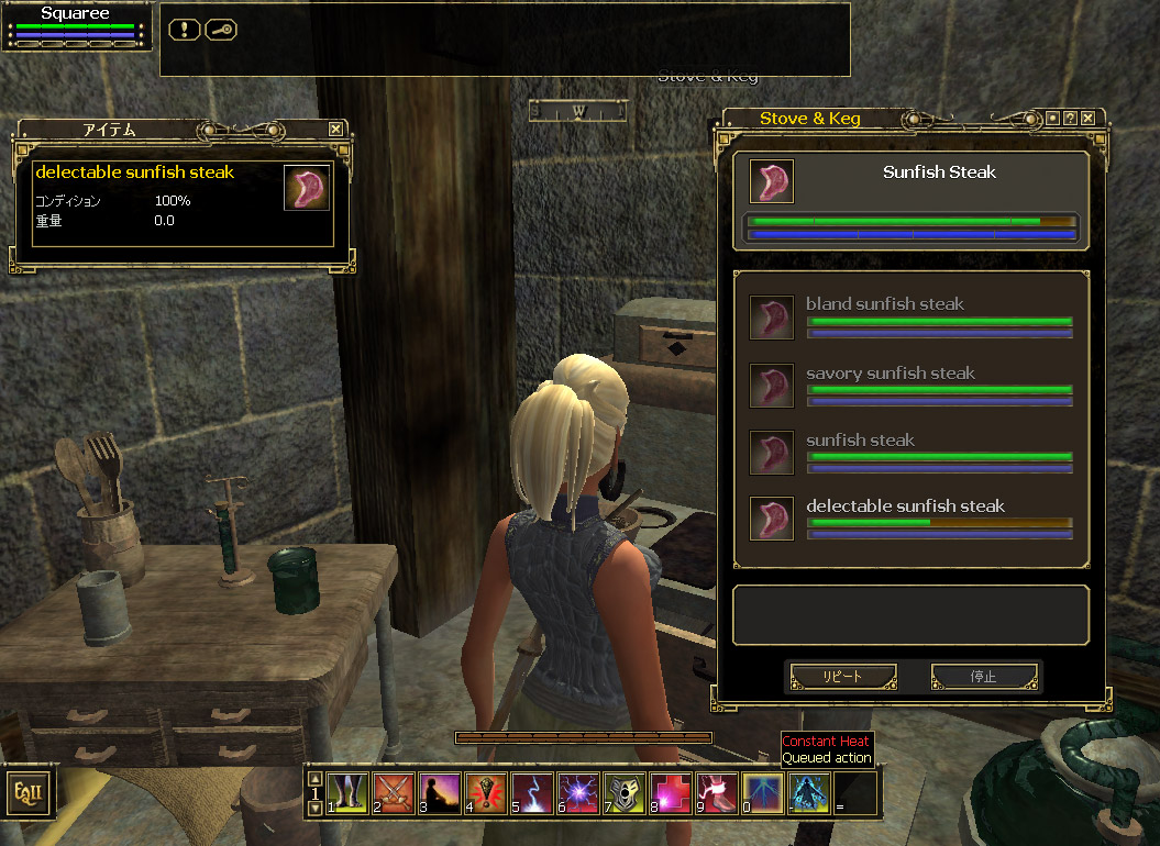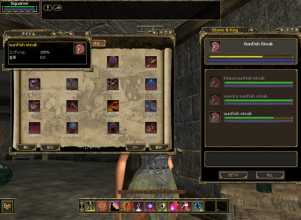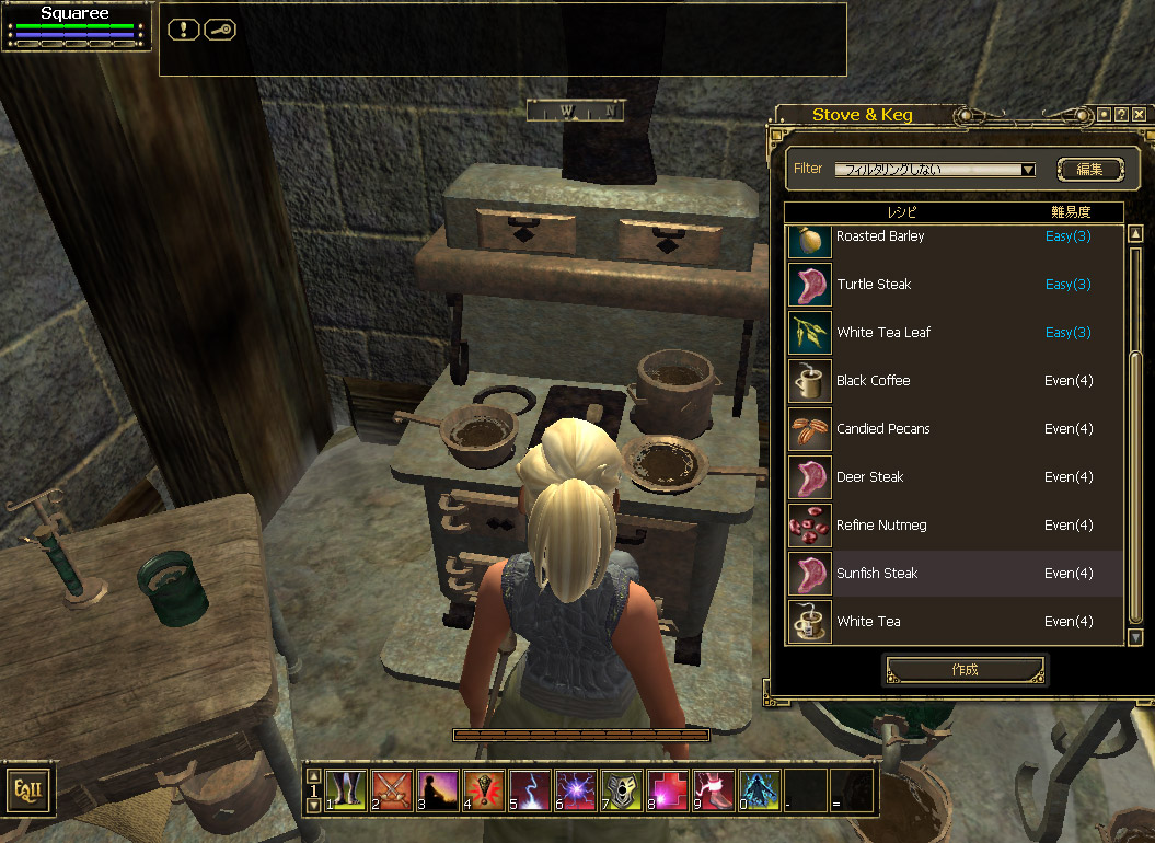 さて,生産はどこでも行えるというのではなく,Forge(炉)やStove&Keg(ストーブ&樽)といったスキルに対応する専用の施設を利用しなければならない。これらの施設がなければ生産活動が行えないので,ハマっているプレイヤーは,何日も冒険に行かずにい続けることも多い。
