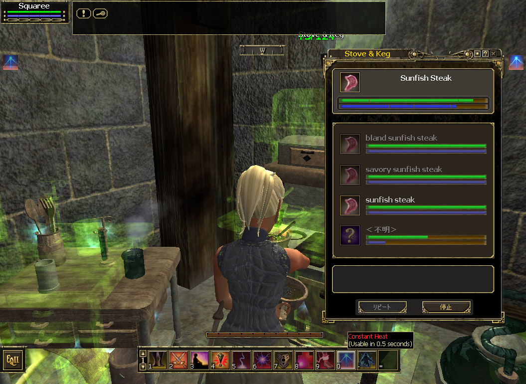 その不確定さを軽減するのが,クリティカルアートとプロフェッショナルアートで,どちらも作製中に使用するスキル(1種のトレードスキルにつき6種のスキルを使う)だ。具体的には,作製途中でレシピミスが発生,それをクリティカルアートで抑えつつ進めていくと,今度は素材配合ミスが発生,それをプロフェッショナルアートで修正……といった感じだ。これがリアルタイムで進行していくので,実際にはかなり忙しく,高クオリティ品の作製には運の要素も必要となる。ある程度の高いクオリティ品を作製し続けることも一応は可能だが,かなりのプレイヤースキルと気合が必要となるだろう。