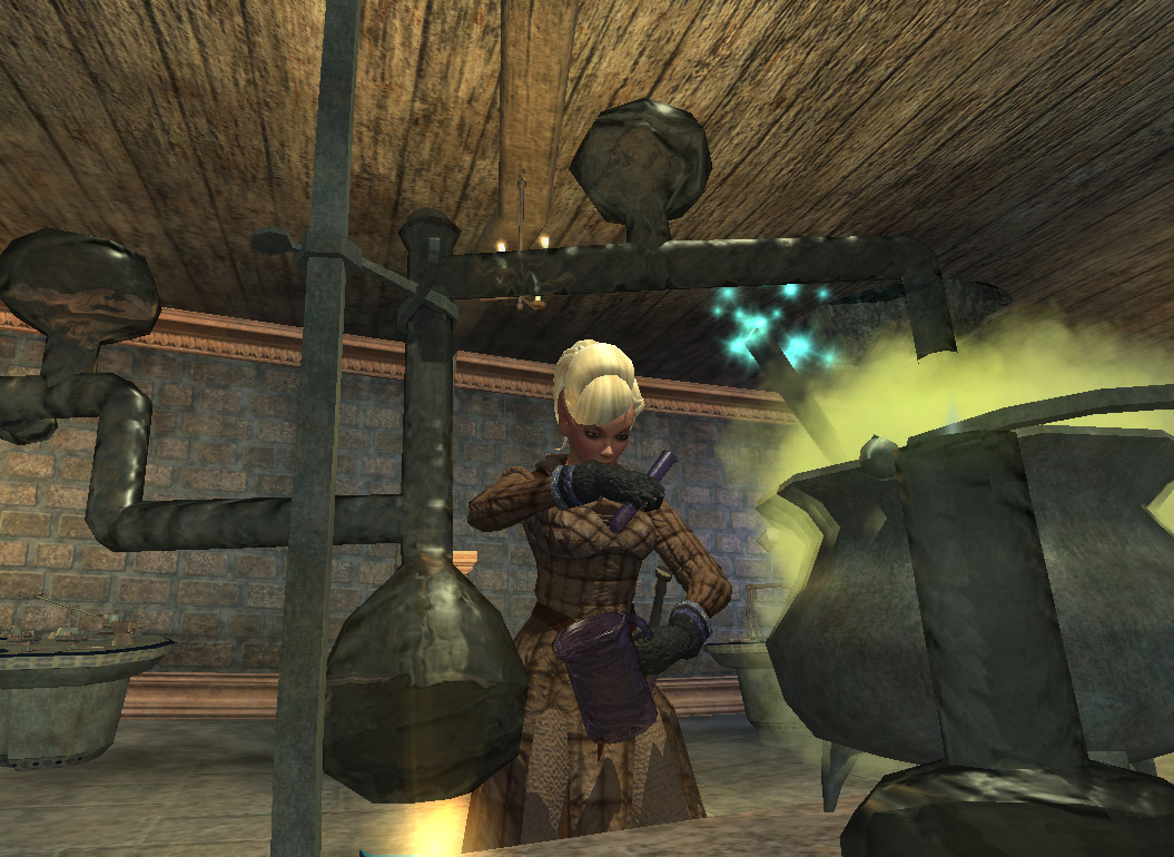また,アーティザンレベルがレベル10を超えて専門分野に突入すると,素材にほかのトレードスキルで作製するアイテムが必要となることもでてくる。たとえば,セイジが魔法書を作ろうとすると,アルケミストのインクが必要といった具合だ。つまり,素材収集,レシピ増加でプレイヤー間(生産者と冒険者)の協力体制が必須となっているのだ。