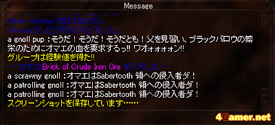 筆者が個人的に感慨深いブラックバロウでの一コマ。このGnollのセリフがちょっと気にいった…… |