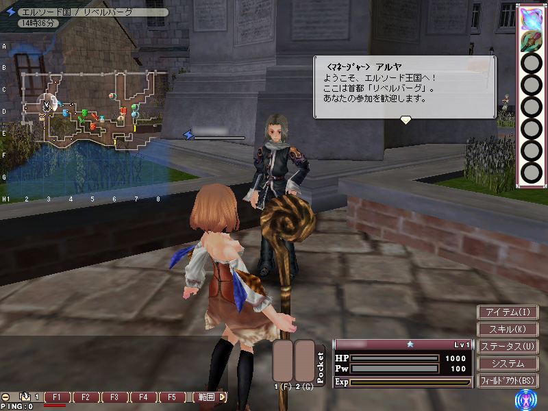ゲームに初めてログインすると,キャラクターは所属国の首都に立っている。そして目の前には「マネージャー」というNPCがいるので,話しかけると基本事項の説明をしてくれる。まずは彼の話をよく聞いて,そのアドバイスに従ってあちこちを見てまわるといいだろう。NPCによる解説は,なかなか詳細なものになっているので,焦らずによく読めば,とまどう機会は減るはずだ。