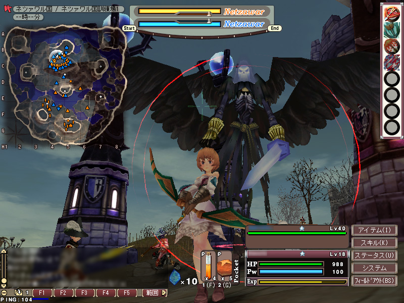 街の見物が終わったら,フィールドに出て,まずはモンスターとの戦いを体験しよう。首都のすぐ隣のフィールドが,弱いモンスターのうろつく初心者用の狩り場となっているので,そこに行ってみるといい。