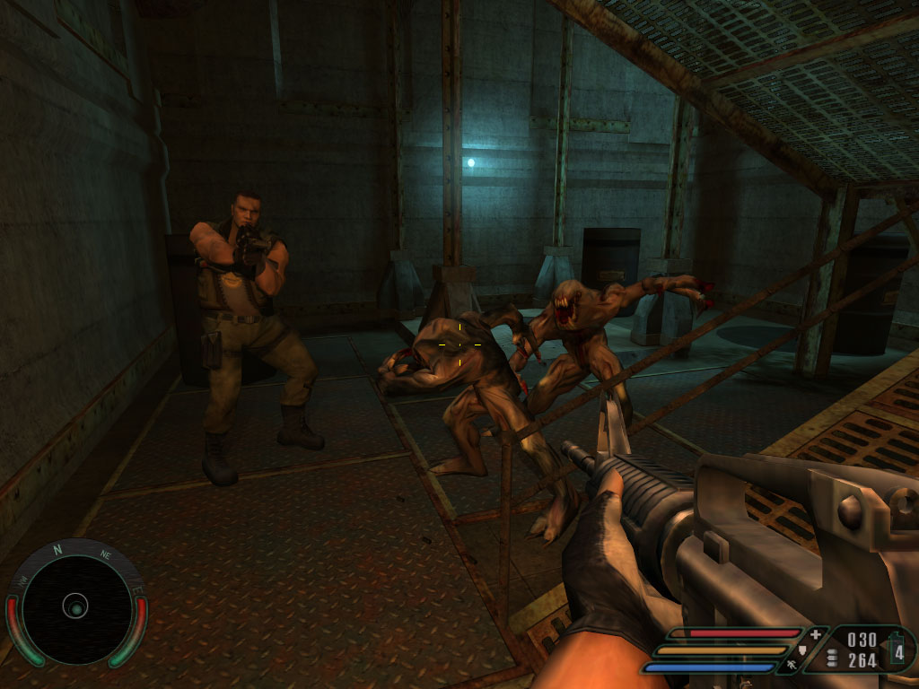 兵士はさておき,本レベルからは本格的にトライジェンと相まみえることになる。施設内部にはまだ檻に入れられたままの実験体に複数出くわすため,なんかすごく動物を虐待しているような複雑な気分にもなるが,敵はそんなことお構いなし。コチラも気合を入れて鉛弾を喰らわせてやろう。