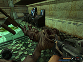 バンカー内は,研究所らしくうさんくさい機材がまばらに配置された屋内マップ。当然,兵士およびトライジェンとの戦いもCQBがメインとなる。