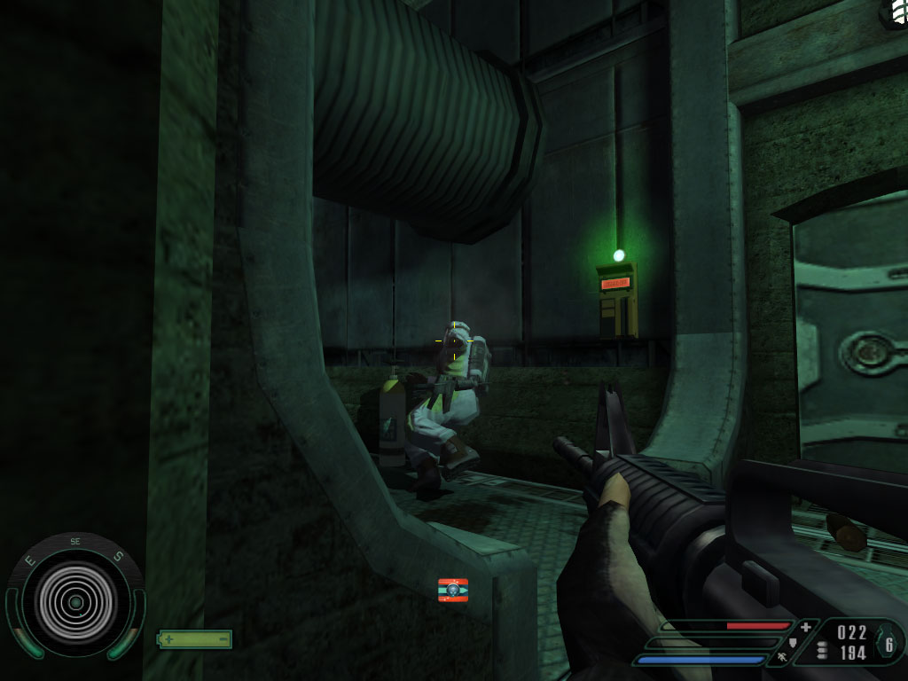簡単な攻略法は,まずエアダクトの部屋に入ったら,すぐに元来た通路を戻る。そこでしゃがみもしくは伏せ状態で待ち伏せて,次々と押し寄せる兵士を倒していくという方法。