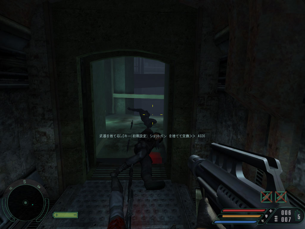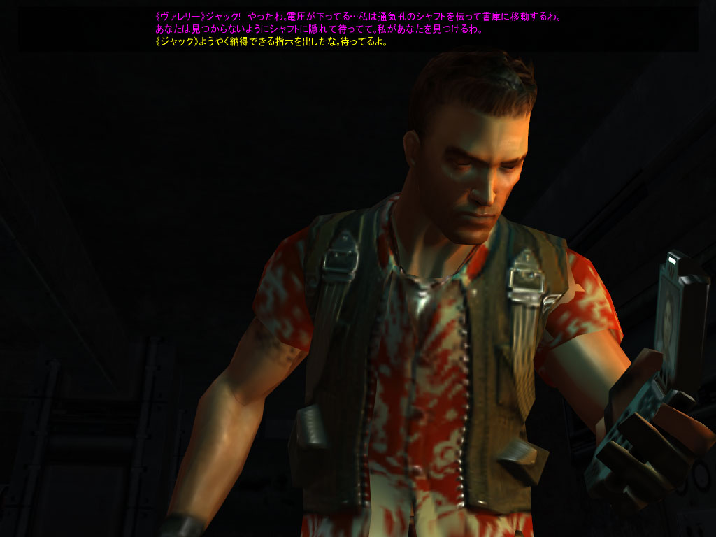 なおここでジャックを襲ってくる兵士は,防弾処理が施されていてかなり"硬い"。通常のサブマシンガンやアサルトライフルだと,一人を攻撃している間に次の一人が通路に踊り込んでくるので,もう少し威力の高いショットガンなどで対応しよう。もちろん,持っていたらだけど。