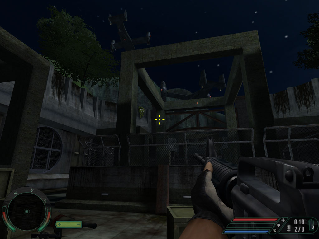 ここは,野外と屋内半々といった感じのハイブリッドマップ。野外は,まばらな敵兵士との戦闘やケーブルを使ったちょっとしたアクションなどと軽めの内容で,屋内に侵入してからが修羅場となる。