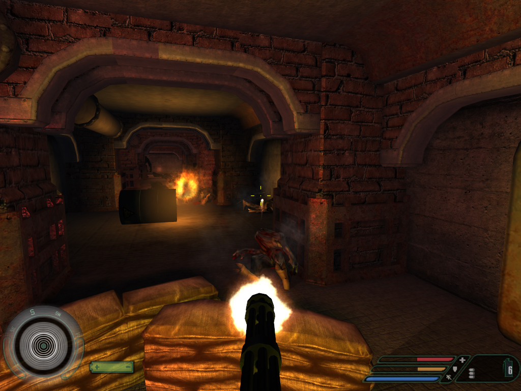 ちなみに,本レベルでは新たな武器が登場しない。ひっきりなしに動く敵兵士と硬いトライジェンのおかげで弾薬が不足しがちになるので,死体からの入手はマメに,また武器の種類をコロコロと変更しないようにしたい。
