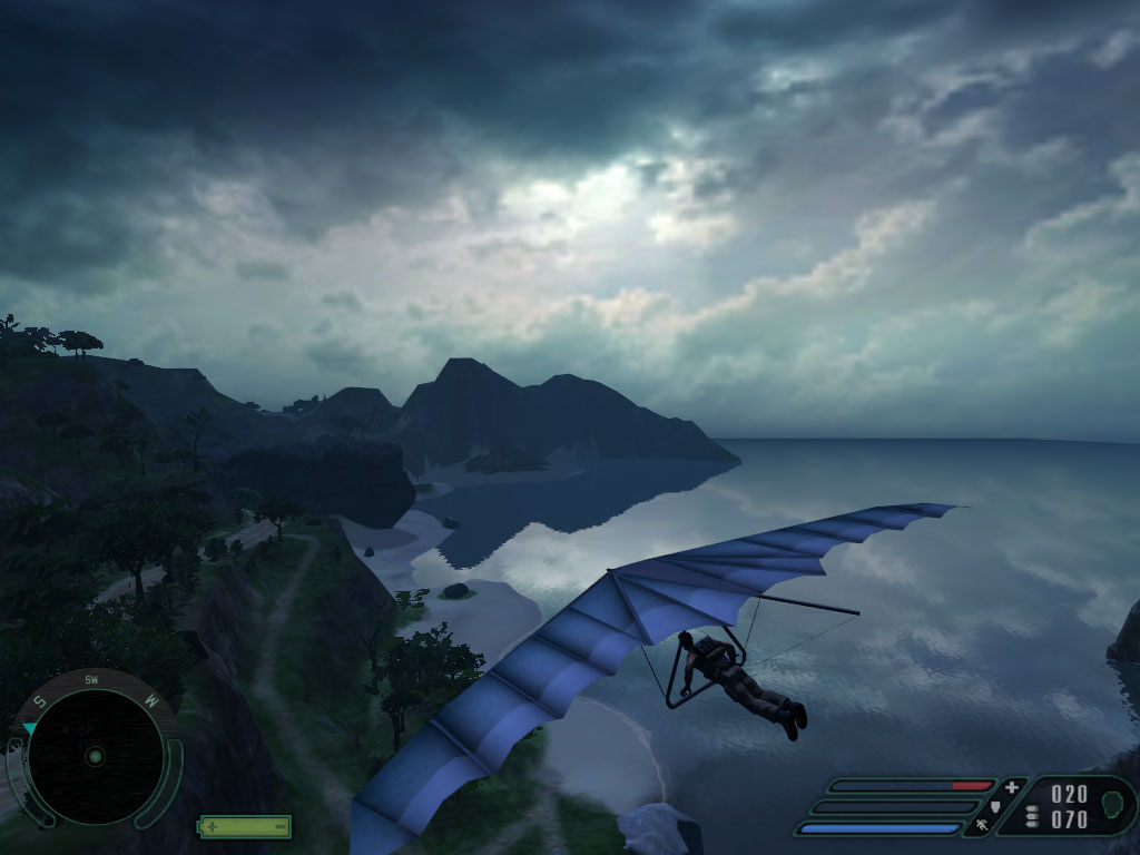 このマップは広大であると同時に,戦闘地帯やトーチカなどの建造物がキチンと道路によって繋がっており,目的地までには多数のルートとチェックポイントが存在する。序盤からして,ハンビー(道),徒歩(地下通路),ハンググライダー(空)という3種類の移動方法が用意されているほどだ。
