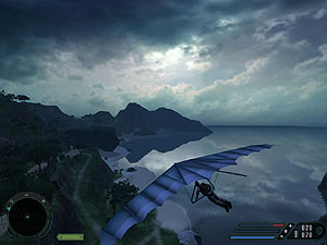 | 久しぶりにハンググライダーが登場。FPSタイトル屈指の美しい背景グラフィックを背に悠々と飛行できる。まぁ眼下はファットボーイだらけなわけですが |