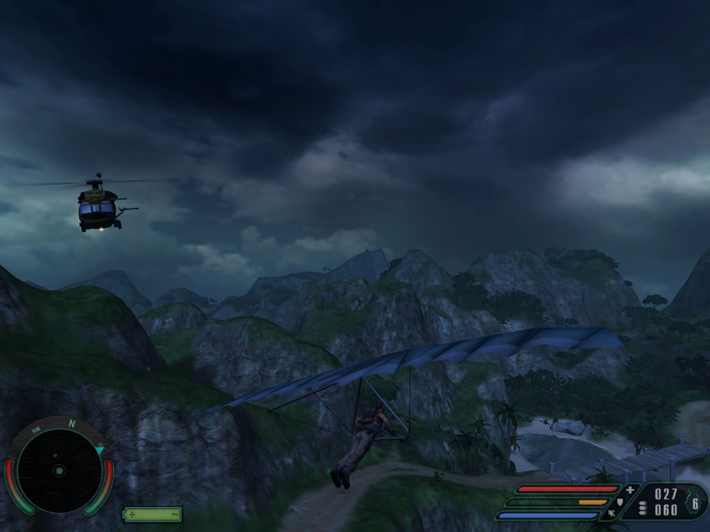 一見するとハンググライダーで多くの敵をやり過ごす方法が効率的に思えるが,着陸後の戦闘がどうしても厳しくなる点や,敵兵士からの武器(弾薬)入手機会が減少する点を考慮すると少し使い勝手が悪い。やはり強力な機銃と,勢いに乗ればそのまま敵を轢き殺してしまえるハンビーでの移動が望ましいだろう。