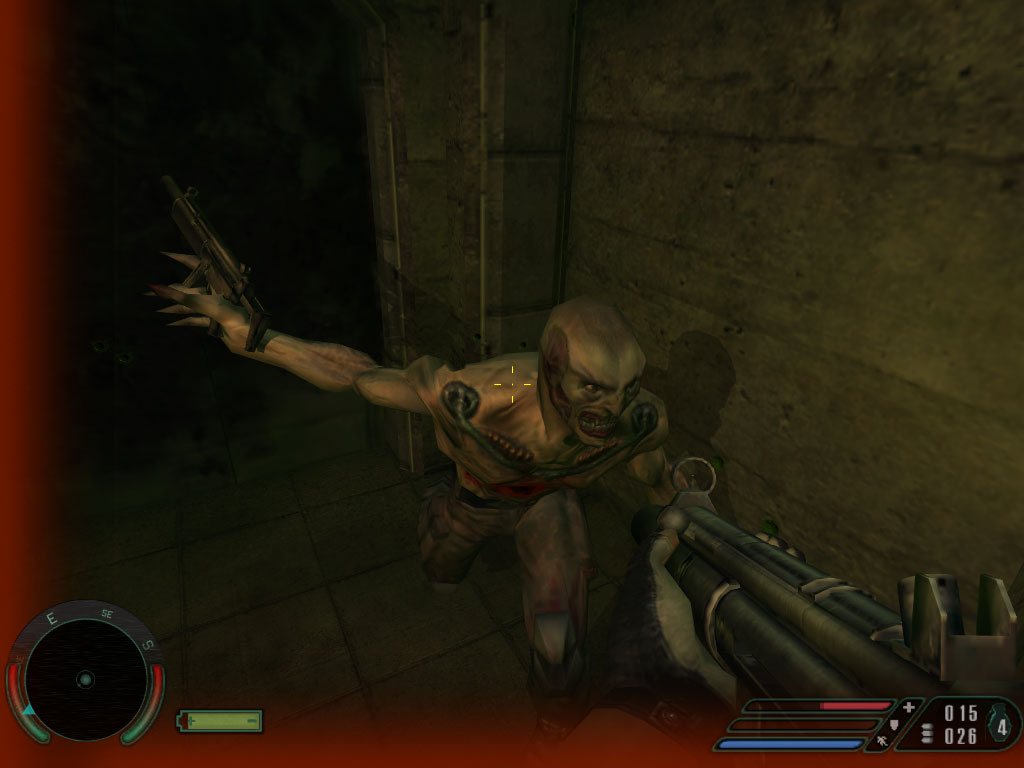 また,このレベルでも新たに新種のトライジェンが登場する。なんとその正体は光学迷彩でカモフラージュできるプレデターライクなモンスター。銃が使えて接近戦も強力,しかも見えないというオールラウンドにやっかいなモンスターなので,こちらもエリートガード同様にサーモビジョンをうまく使っていきたい。