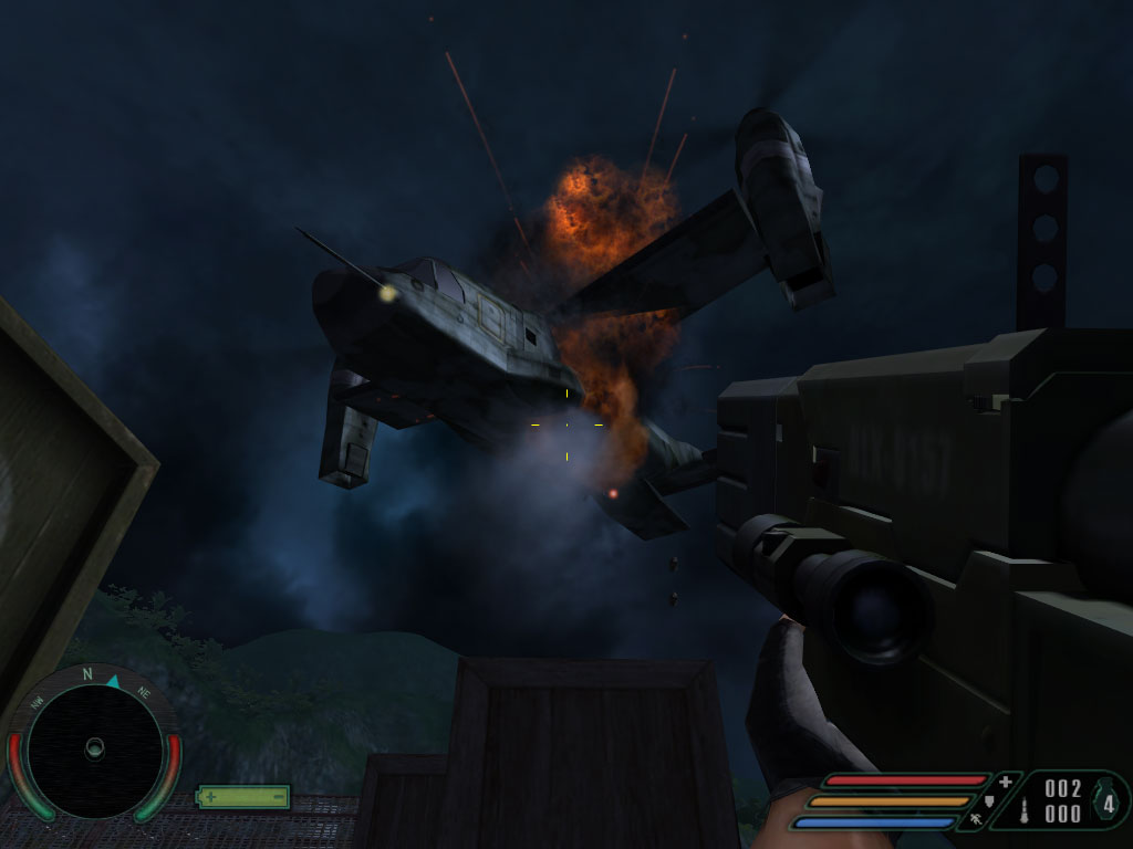 ガンシップはロケットランチャーで。シップ自体に効果はないが,乗っている兵士を倒せる |