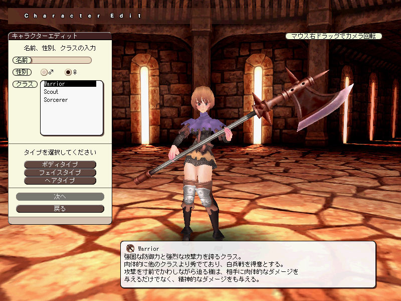 近接戦闘武器と防具を装備して敵と戦うウォリアーは,スタンダードなタイプの兵士である。高性能な鎧を装備できるため,スカウト,ソーサラーに比べ防御力に勝る。