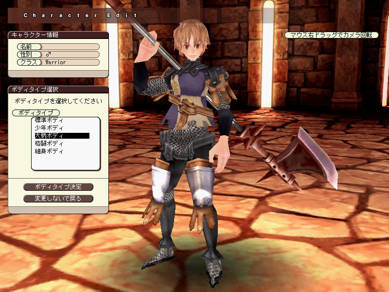 FEでは,どのスキルを伸ばしていくかでキャラクターに個性を持たせられるので,ウォリアーの場合は,"両手剣"を持って戦うスタイルか,"片手剣+シールド"を装備して戦うスタイルのどちらかを選んで育ててることになりそうだ。ただし,単純に両手剣=攻撃力重視,片手剣+シールド=防御力重視ということにはならないようで,このあたりはまさに現在検討中の部分らしい。