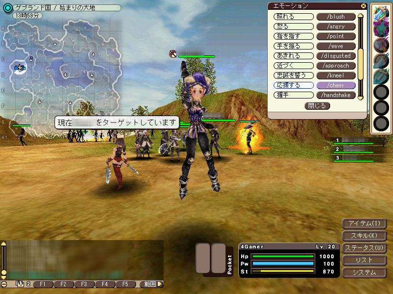 経験値はモンスターを倒すことでも得られるが,前述のように,戦争に参加して勝ったほうが効率良く入手できる。アイテムに関しても同様で,Mobドロップ品のクオリティは低く抑えられている。最もグレードが高い装備品は,戦争に参加して勝つことによって得られる"リング"を溜めていき,それと交換することで得られる種類のアイテムだ。街のベンダーからお金で買えるアイテムは,その中間のグレードになっている。
