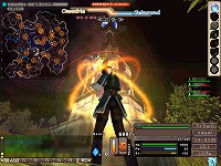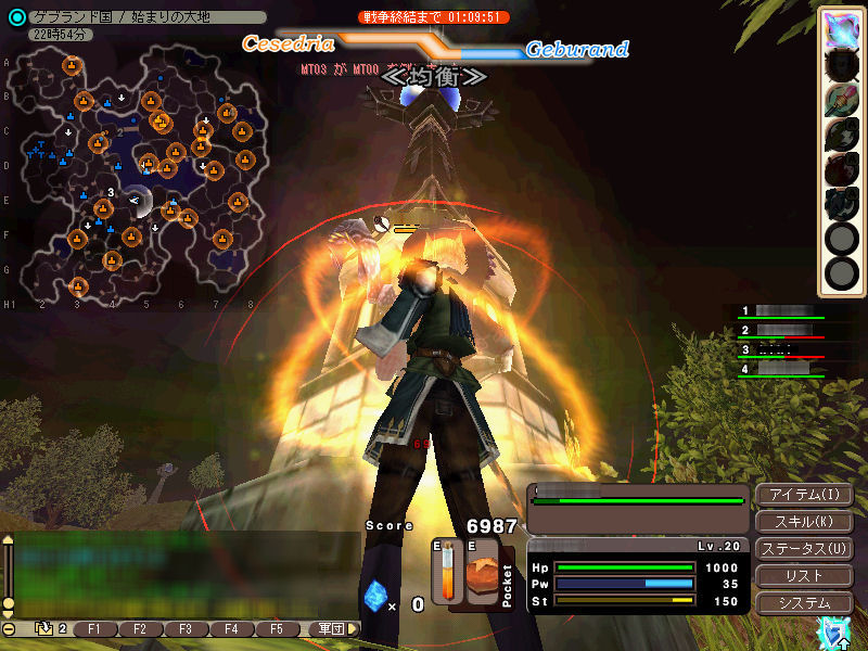 | 誰かがそのフィールドにキープを建てて宣戦布告すると,一定時間後に戦争が開始される。参加したくない場合は,全体マップへと離脱すればよい | 操作キーの一覧は戦闘中いつでも呼び出せる。この画面のまま操作も可能だった。ゲームに慣れるまでは便利かもしれない |