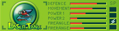 基本は第一武器(単発弾)で攻撃し,ダメージorリングアウトを狙う。非常に特殊なタンクで,耐久力が50%を切ると「怒り状態」に突入し,攻撃力が50%Up! しかも,毒などの効果も消し去ってしまう(通常は体力が30%で毒は解除)。後半戦では恐ろしい攻撃力で猛威を振るうことになるだろう。このときに,第二武器(2発弾)を使って敵に命中すれば,非常に大きなダメージを与えられる。