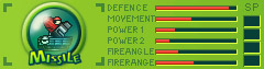 第二武器(誘導弾)は攻撃力が小さくあまり使えないが,最後のフィニッシュや,アイテムとの併用で敵をかく乱できる。ただし誘導弾は,砲弾の放物線が下りになったときのみ誘導するので,敵の手前を狙うつもりで撃とう。