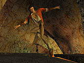 トゥームレイダーはキャラクターのコントロールの難しさに問題点があったとされているが,Galleonでは操作性も十分に配慮されている。これは,Galleonのキャラクターが周囲の環境に自動的に対応するようになっているからで,目の前に高い壁があればラマは勝手によじ登ってくれるし,目の前に木の枝のような障害物が現れれば,プレイヤーがコマンドすることもなくしゃがんでくれる。これは,なかなか細かい配慮であるといえるだろう。
