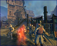海戦では,最大で50人程度のプレイヤーキャラが入り乱れての砲撃戦を満喫できそうだ。レベルが上がるにつれて銃の照準が正確になったり,船員達の作業効率が上昇したりし,陸地では剣やマスケット銃を利用した戦いが想定される。