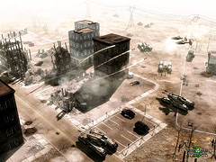 本作では,未来世界の貴重な資源ながら,人体や環境に悪影響を及ぼす“ティベリウム”という植物性鉱石に絡んだストーリーが展開する。マンモスタンクのような兵器と防御力の高さがウリのGDI軍,ティベリウムを利用し,速攻が得意なNOD軍に加え,今回からはエイリアン系の新勢力“Visitors”が加わる。マルチプレイヤーモードでは,ゲームをリアルタイムで観覧できるスペクテイターモードなど,実況中継を念頭においた数々のフィーチャーがあり,対戦トーナメントを意識した作りになっている。強い太陽に焼かれているような独特のグラフィックスも魅力的だ。