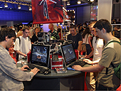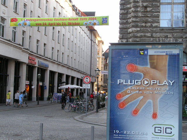 ドイツのライプチヒで,「Game Convention 2004」が8月19日から22日まで開催された。このGame Conventionは日本ではほとんど知られていないが,9月始めの恒例となっていたECTSに代わるヨーロッパ最大のゲームショーとして昨年(2003年)スタートしたばかり。イベント会場となったLeipzig Messeは,ヨーロッパの典型的な駅の屋根を思わせる半円状の巨大な建物を中心に,いくつもに分かれた大きなホールが両側に連なっており,近代的で真新しい建物である。アメリカ最大のゲームショーE3(Electronic Entertainment Expo)など従来のイベントと異なるのは,Game Conventionは業界人専用のトレードショーではなく,ファンが実際にゲームを遊べるように構成されたものだということ。東京ゲームショーのノリに近く,参加している企業も,ゲームを遊ばせるテスト場としての位置付けをしているようだ。Tシャツやグッズの放出に列を作る風景がアチコチで見られるし,「Halo 2」「FIFA 2005」「EverQuest 2」「Dungeon Siege 2」など,E3では業界人でさえほとんどプレイできなかった作品が,誰でも自由に遊べるようになっている。「ゲームのトレードショーを行うには9月のECTSでは遅すぎる」という批判は前々からあったので,ファン優先のイベント形式は,とりあえず大成功といえるだろう。