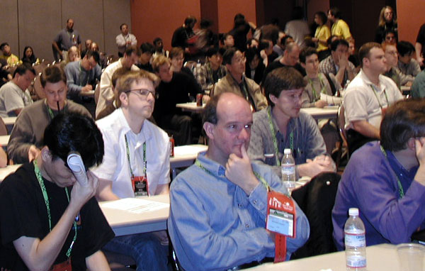 そして4年前,IGDAはあまりにも大きくなったGDCの運営につまずき,ゲーム開発者のバイブル的な存在のGame Developer誌の販売元でもあったCMPメディアに運営を委託することで,スポンサーによるエクスポ会場を併設した巨大なイベントへと成長していったのだ。さらには,コンピュータサイエンスを専攻している大学生やゲーム業界に興味を持っている一般人も,ボランティアとして参加者を誘導する仕事と引き換えに,セッションやエキスポ会場への入場を無料で許可されている。形式としては,コンピューターグラフィックスの世界的な学会であるSIGGRAPHのようなものだと考えていいだろう。