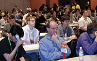 そのほか,基調講演がアメリカ内外からの招待客によって行われ,今年はソニーエンターテインメントの岡本伸一氏や吉田修平氏,ポリフォニーの山内一典氏,そしてセガの名越稔洋氏らが大勢の観客を前に講演を予定している。7回の基調講演のうち,4回が日本の業界人で占められているというのは,それだけ欧米の開発者たちが日本との対話を求めているということだろう。去年あたりから,コナミやセガを始めとする日本の開発者やプレス陣の一団も会場で頻繁に見かけるようになり,ゲーム業界のグローバル化が感じられる。