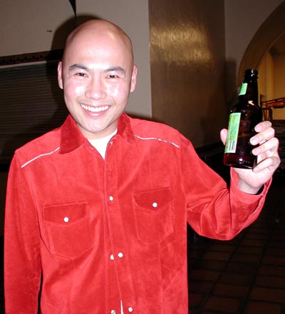 ただの酔っ払いではない。この人こそ,若くしてカンファレンスを纏め上げているアラン・ユウ氏である。パーティーで酔っ払っているのだけど…… |