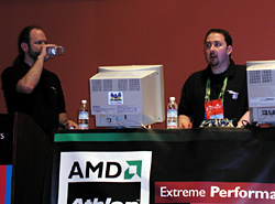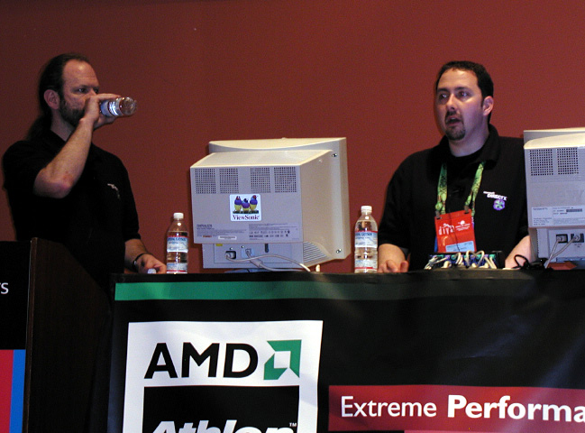 | 写真左は,DirectXのグラフィックアーキテクトであるチャズ・ボイド氏。開発者と語り合う姿勢が,DirectXを浮動のAPIに押し上げた |