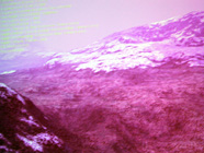 | Westwood Studios社が公開したDisplacement Mappingのデモ。プロジェクターに写ったものを撮影したので,色が褪せてブレてしまっているけど,本当なら32ビットカラーの美しい地形になっている |