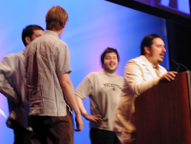 | Independent Games Festival Awardで大賞を獲得し,15000ドルの賞金を手にしたスコルニック兄弟。結構年齢はいってるみたいだが,本業の片手間でもゲームが作れてしまうとは……。ノミネート作品やホームページへのリンクは,「ここ」からどうぞ |