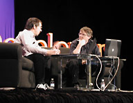 ゲーム界とコミック界の大御所二人が顔を合わせ,それぞれの立場からエンターテイメントを図式化してしまおうという対談。スコット・マクラウド氏は,図形的な構造を持つ作品を得意とするコミック作家で,「Reinventing Comics」という著作もあるアメリカンコミック界のオピニオンリーダーだ。マクラウド氏の作品も閲覧できるホームページは,「ここ」で見ることができる。