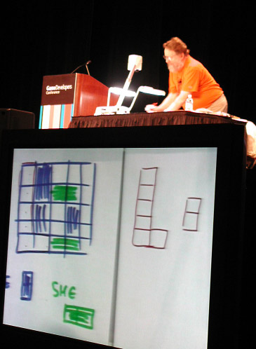 モリアティー氏はGDCの常連的な存在で,いつも大人気の講義となる。その理由は,練り込まれた遊び心いっぱいの講義方法と,まったく関係なさそうな話題からゲームデザインについて考えさせる講義内容である。今回も,部屋の照明をすべて落とし,バッハの音楽をかけながら,1970年代にイギリスで起こった"黄金のウサギ"の財宝探しのブームや,バッハの楽譜に秘められたレトリック("ヨハンセン"の14文字に因んだ音符の数や,B,A,C,H――Bマイナーのドイツ表記――という音色など)などを紹介し,「芸術的な遊びというものは,隠しキャラなど小手先の商売道具ではなく,すでに受け手の前に出された状態で存在し,知的な興味や探求によって引き出されるべきだ」と述べた。