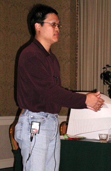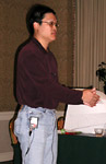 エリック・ワン 古くからWestwood Studios社に在籍し,「コマンド・アンド・コンカー」シリーズの開発でも手腕を振るっている製品開発ディレクター。「Earth & Beyond Online」では,クリエイティブな作業にも深く関わっている。最初に触ったコンピュータが「TRS-80」というほど古参のゲーマーでもある |